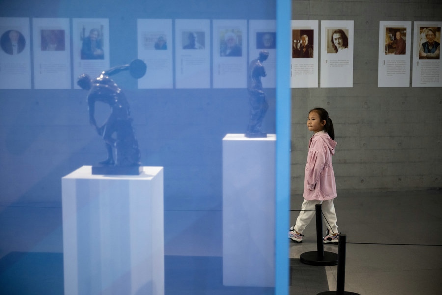 10月18日 游客在呼和浩特雕塑藝術(shù)館