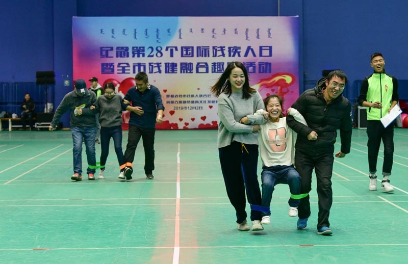 12月 2日,在呼和浩特市全民健身中心綜合體育館,參加殘健融合趣味活動的隊員們正在進行比賽。當日,由呼和浩特市殘疾人聯(lián)合會主辦,以“提高殘疾人的參與度和領導力”為主題,紀念第28個國際殘疾人日暨全市殘健融合趣味活動在該館舉行。活動旨在進一步發(fā)展殘疾人事業(yè),豐富殘疾人文化體育生活,推動殘疾人文化體育事業(yè)健康發(fā)展。(內(nèi)蒙古日報社融媒體記者 懷特烏勒斯攝)