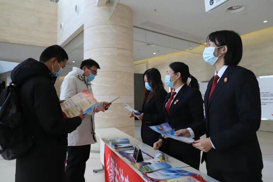 主題黨日活動(dòng)以發(fā)放訴訟服務(wù)指南、普法宣傳單、學(xué)習(xí)憲法宣傳展板、法律問題現(xiàn)場(chǎng)咨詢等多種形式開展,向群眾普及法律知識(shí)、弘揚(yáng)憲法精神。