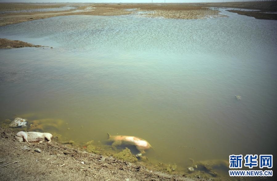 這是3月16日在達拉特旗黃河國堤內(nèi)拍攝的死豬。新華社記者 賈立君 攝
