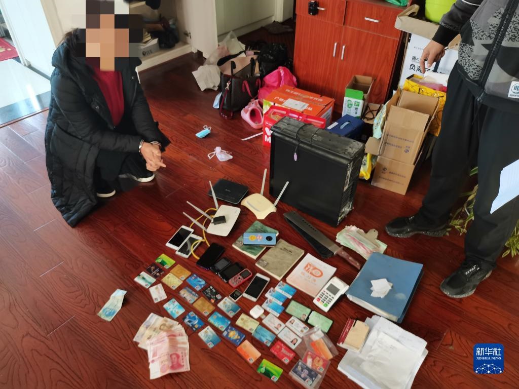這是民警在一處窩點抓獲的犯罪嫌疑人及在現(xiàn)場查獲的部分犯罪工具。(受訪單位供圖)