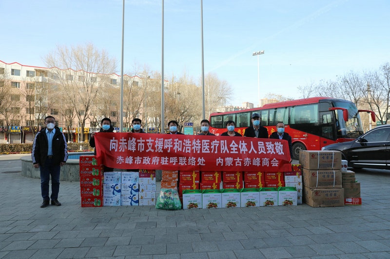 北疆新聞網、北疆新聞APP、北疆云消息(馬國鑫)2月27日,赤峰市政府駐呼和浩特聯絡處攜手內蒙古赤峰商會,共同發(fā)起“致敬家鄉(xiāng)馳援呼市一線醫(yī)療隊”慰問活動,向來自家鄉(xiāng)的“戰(zhàn)疫”英雄送去誠摯的問候和急需的防疫和生活物資。