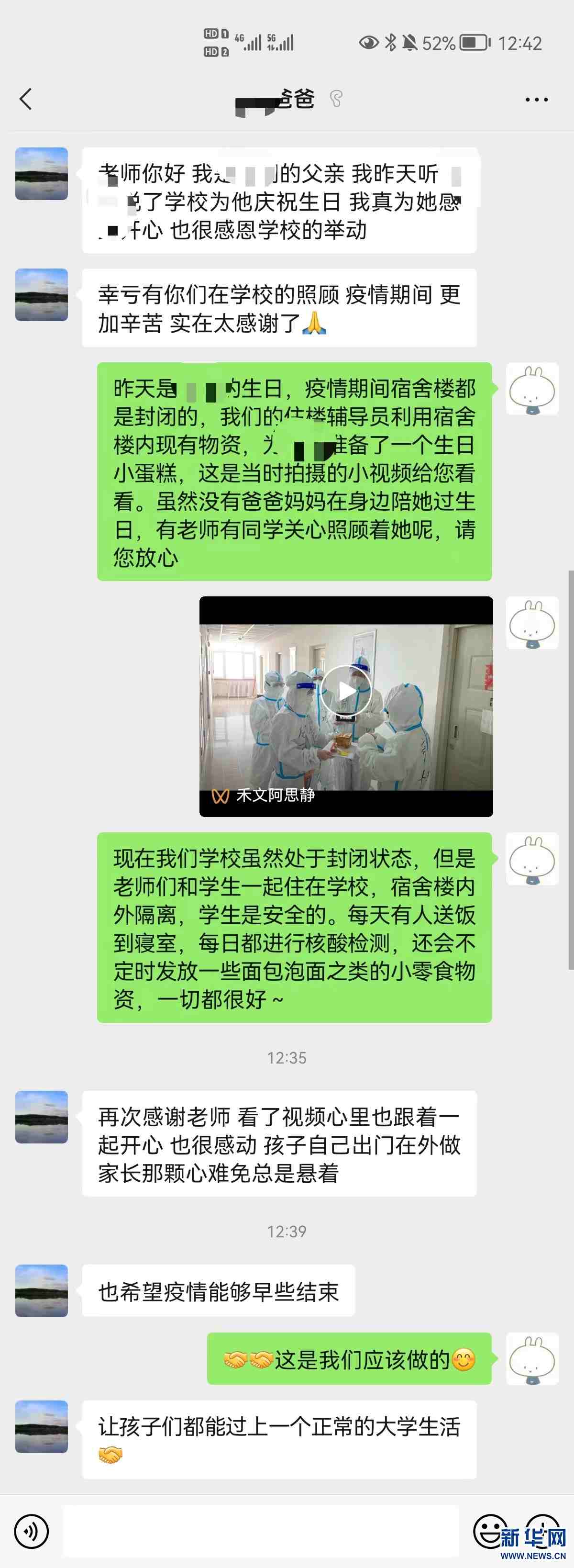 內(nèi)蒙古工業(yè)大學(xué)北二公寓學(xué)生家長向老師們表示感謝。新華網(wǎng)發(fā)(受訪者供圖)