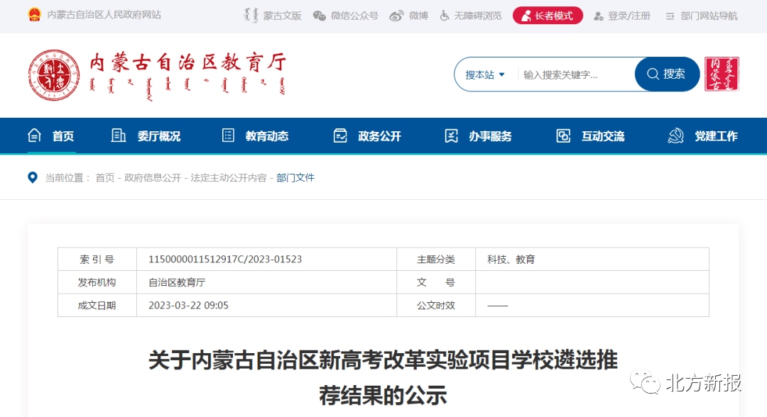 關于內(nèi)蒙古自治區(qū)新高考改革實驗項目學校遴選推薦結(jié)果的公示