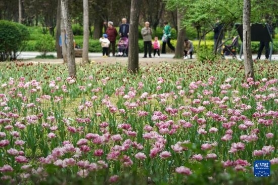 近日,山西省太原市迎澤公園內(nèi)各色郁金香競(jìng)相綻放,吸引游人前來(lái)觀花賞景。
