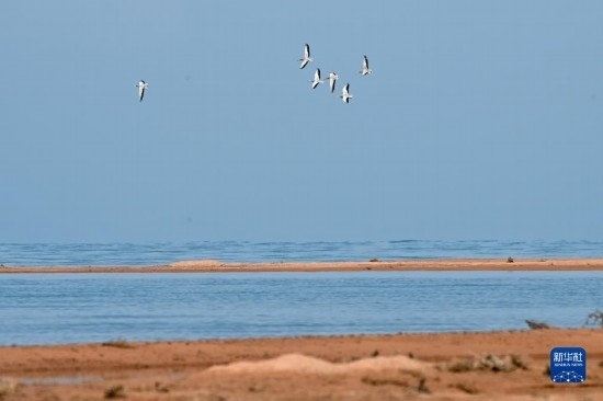 一群斑頭雁在阿爾金山國家級自然保護區(qū)飛翔(5月23日攝)。