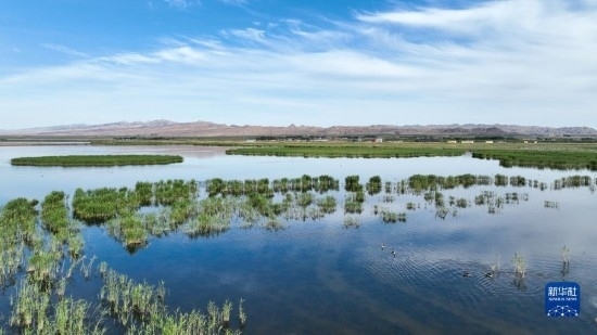 夏日里,位于內(nèi)蒙古巴彥淖爾市烏拉特前旗的烏梁素海波光粼粼,風(fēng)景如畫。
