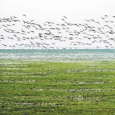眾多鳥兒來網(wǎng)湖棲息。