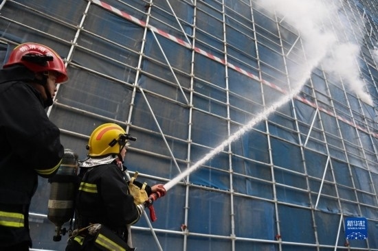 當(dāng)日,浙江省杭州市富陽區(qū)“安全生產(chǎn)月”消防應(yīng)急演練在中建三局富陽銀湖生物信息產(chǎn)業(yè)園項(xiàng)目工地啟動,現(xiàn)場進(jìn)行火災(zāi)撲救、人員施救等環(huán)節(jié)的演練,以提升安全生產(chǎn)應(yīng)急能力。