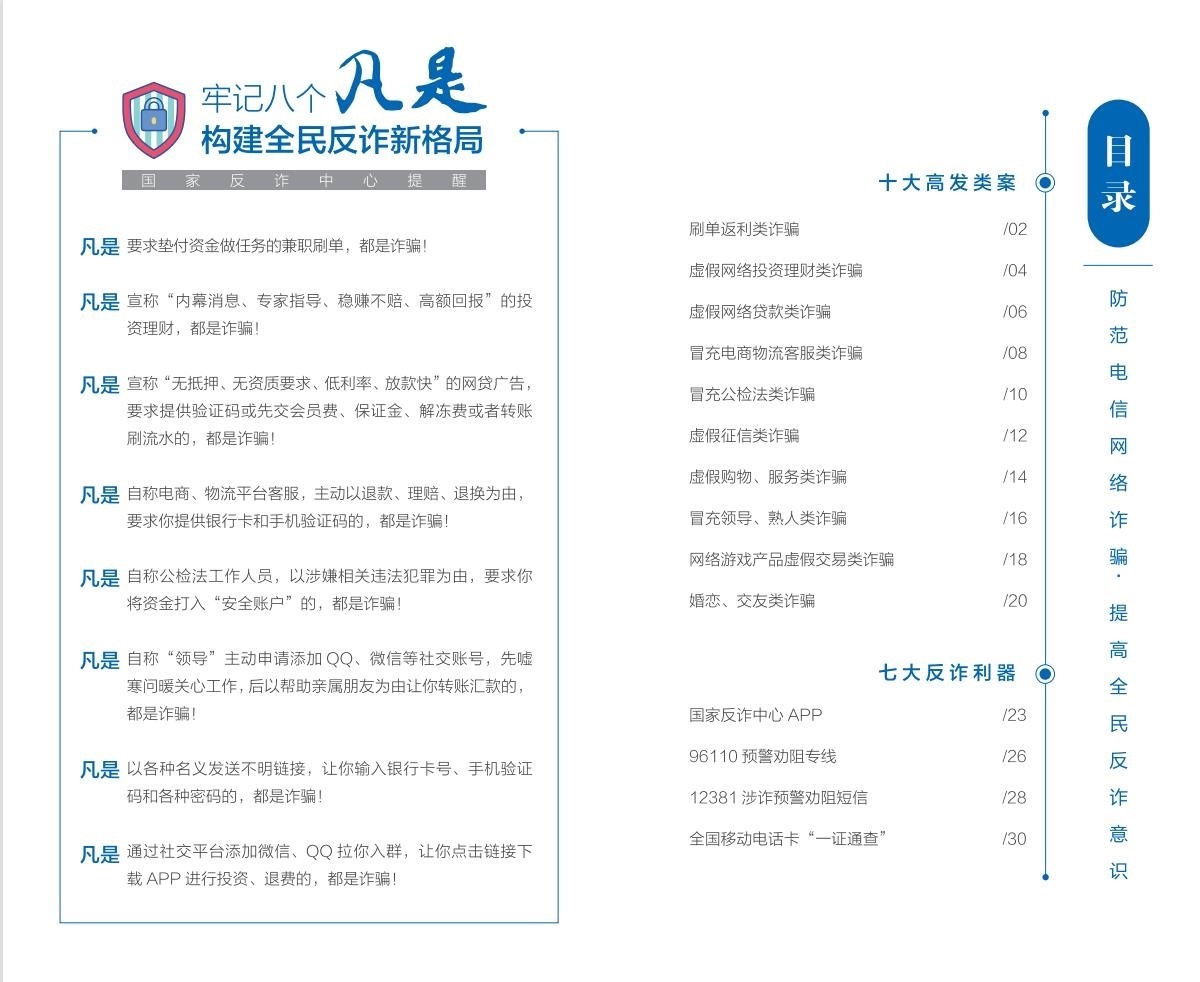 國家反詐中心推出《2023版防范電信網(wǎng)絡(luò)詐騙宣傳手冊》