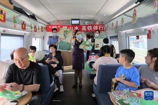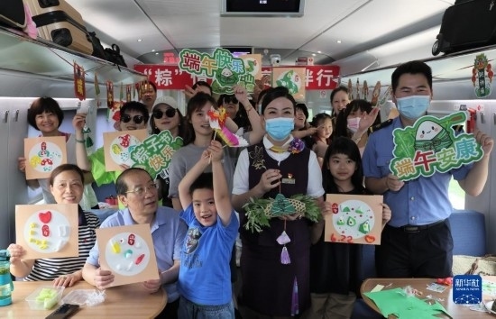 端午節(jié)前夕,鐵路上??瓦\段在列車上邀請旅客參加端午民俗活動,迎接端午佳節(jié)。