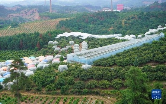 這是湖南省靖州苗族侗族自治縣渠陽鎮(zhèn)官團(tuán)村楊梅種植戶為楊梅搭建的大棚和網(wǎng)室設(shè)施(6月18日攝)。