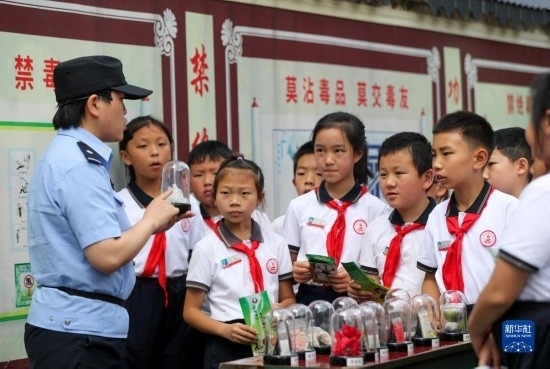 6月25日,民警在貴州省安順市禁毒宣傳教育基地為學(xué)生講解毒品相關(guān)知識(shí)。