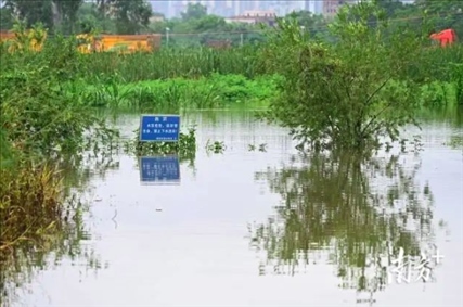據(jù)南方+9月11日20時許消息,記者到彭村附近經(jīng)過村民指引到達長久坡村委會北界羅村,看到農(nóng)田已經(jīng)被淹沒,周邊水浸處已經(jīng)設(shè)置警戒線。記者看到,該區(qū)域還有多個養(yǎng)殖場和廣東省重點龍頭企業(yè)。