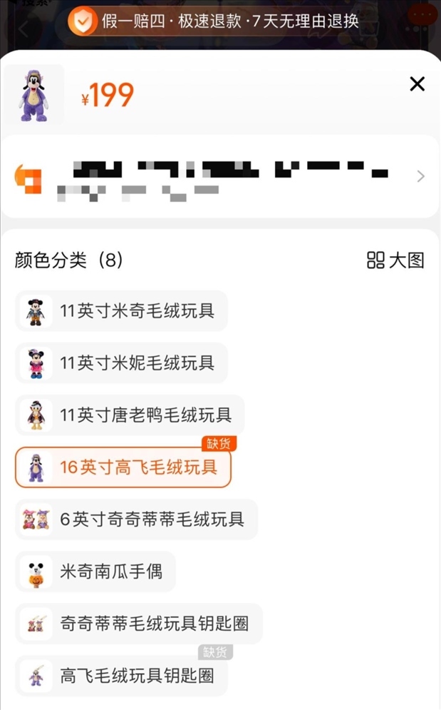 一位不愿意透露姓名的網(wǎng)友告訴紅星新聞,自己9月26日去上海迪士尼樂(lè)園,希望能購(gòu)買(mǎi)“紫龍高飛”商品,然而大約中午就已斷貨?!肮ぷ魅藛T告訴我們,沒(méi)有貨了,不用排隊(duì)了。就是因?yàn)檫@樣,我后來(lái)才高價(jià)買(mǎi)了商品。”