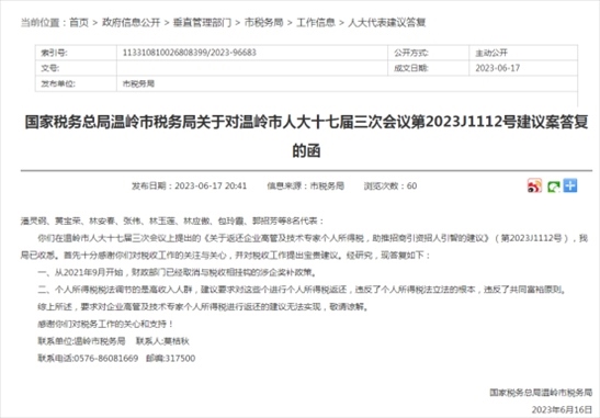·浙江溫嶺多位代表委員建議返還企業(yè)高管個(gè)稅,當(dāng)?shù)刎?cái)稅部門回應(yīng):違反共同富裕原則。
