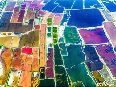 2023年7月5日,山西運(yùn)城,七彩鹽湖色彩斑斕。