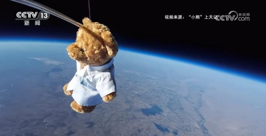 氦氣球托升著一只毛絨小熊,在泛著藍色光暈的地球上漂浮旋轉(zhuǎn)。本周二,這則小熊萬米飛天、與地球合影的視頻,被稱為理工生的優(yōu)雅浪漫。
