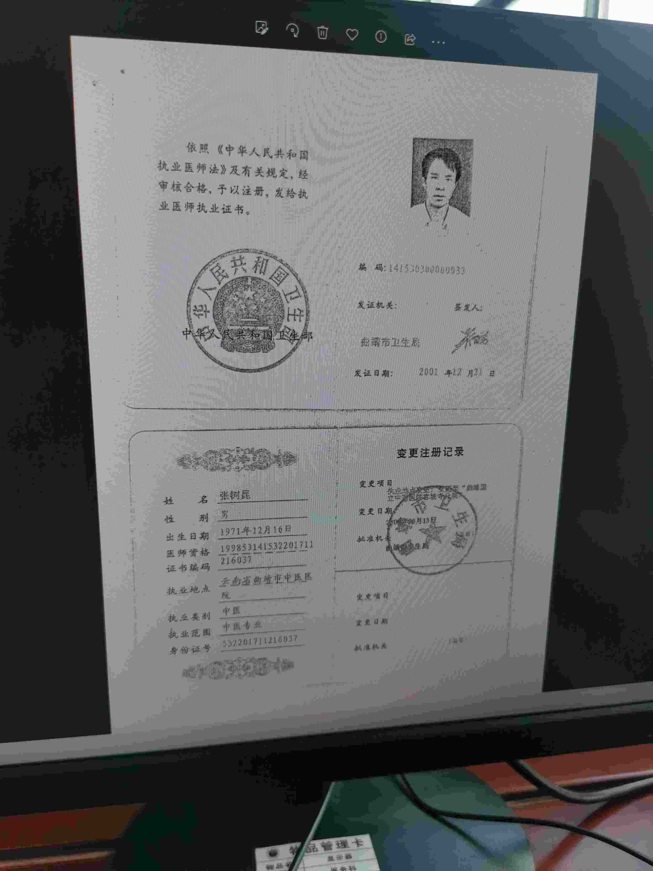 記者來到曲靖市中醫(yī)醫(yī)院,見到了張樹昆醫(yī)生,多次追問下,張醫(yī)生表示,是他的妻子使用他的證件在美團(tuán)注冊(cè),他“只是配合”進(jìn)行的人臉識(shí)別,其他情況并不知情:當(dāng)時(shí)因?yàn)檎麄€(gè)過程我是不清楚的,我都是不清楚的,我真不清楚,是我真的不清楚,因?yàn)槲业淖C件是中醫(yī)科對(duì)不對(duì)?我雖然從事推拿,因?yàn)閷I(yè)是中醫(yī)的,我的執(zhí)業(yè)證上是中醫(yī)。