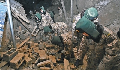 12月19日,西部戰(zhàn)區(qū)第76集團(tuán)軍某旅在積石山縣大河家鎮(zhèn)陳家小學(xué)展開救援。馮彥榮攝(新華社發(fā))
