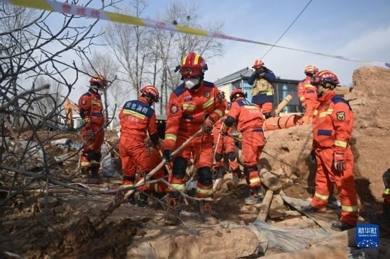 12月19日,救援機(jī)械和人員在青海省海東市民和回族土族自治縣中川鄉(xiāng)金田村清理地震引發(fā)的砂涌。