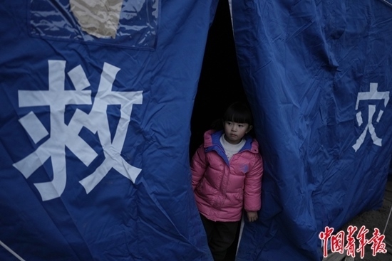 韓福成的兩個(gè)小女兒年紀(jì)小,對(duì)地震沒(méi)什么感覺,“還想著睡覺”;獨(dú)自在縣中寄宿的大女兒和老師在一起,“不冷,也不會(huì)很害怕”。