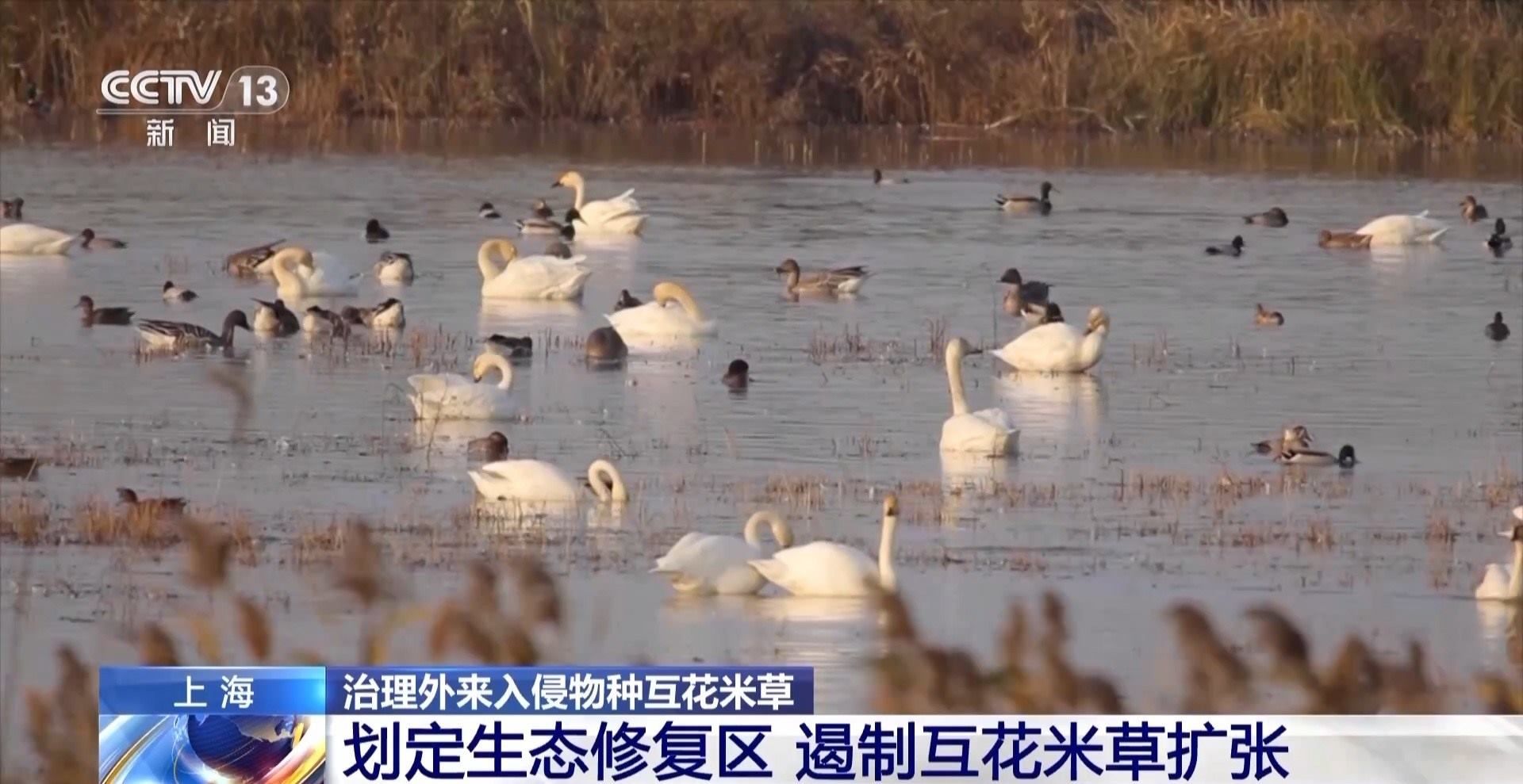 崇明東灘鳥類國家級自然保護區(qū)生態(tài)修復助理工程師 孫雪娜:經(jīng)過我們科研監(jiān)測,發(fā)現(xiàn)互花米草它的根系很密,原本可能會在這里有非常多的底棲生物,比如說這個蟹類、貝類,但是因為它很密的這個根系,就導致這個底棲生物它沒有什么生存空間。然后對鳥類,它可能在這片取食的這個數(shù)量也很少,因為它可能沒什么吃的,所以這個生物多樣性就會很低。