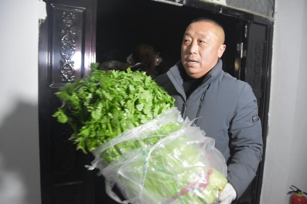 1月23日,志愿者正在搬運(yùn)蔬菜。新華社記者顧煜 攝