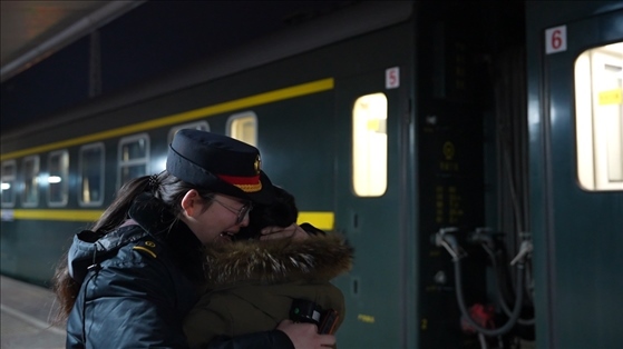 14號(hào)車(chē)廂內(nèi),來(lái)自黑龍江省齊齊哈爾市泰來(lái)縣的王興海和陳玉倩望著車(chē)窗外、站臺(tái)上的王靚怡,喜笑顏開(kāi)。跨越2700多公里、歷時(shí)52個(gè)小時(shí),只為給女兒一個(gè)驚喜,陪她在崗過(guò)年。