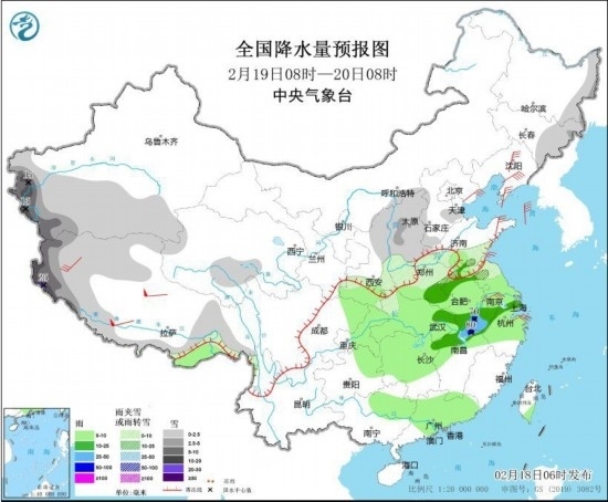 全國降水量預報圖(2月18日8時-19日8時)