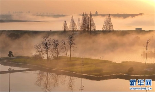 3月20日清晨,在安徽省池州市,薄霧輕籠下的秋浦河,如夢似幻,與若隱若現(xiàn)的村莊、高鐵構成一幅流動的水墨畫卷。