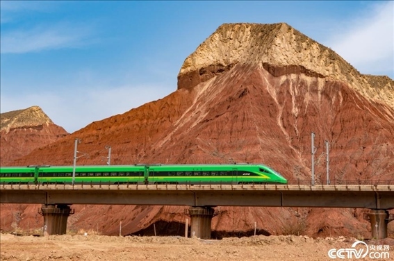 動車組列車疾馳在蘭新高鐵上,與錦繡山河構(gòu)成了一幅幅優(yōu)美的動態(tài)畫卷。