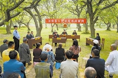 近日,江蘇省沭陽(yáng)縣人民法院廟頭人民法庭在新河鎮(zhèn)百年古栗林巡回開(kāi)庭審理一起買(mǎi)賣(mài)合同糾紛案件。