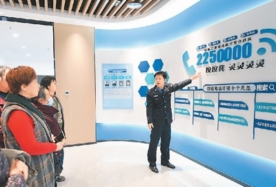 浙江省湖州市吳興區(qū)愛(ài)山街道警務(wù)人員向群眾介紹網(wǎng)絡(luò)反詐知識(shí)。新華社記者 翁忻旸攝
