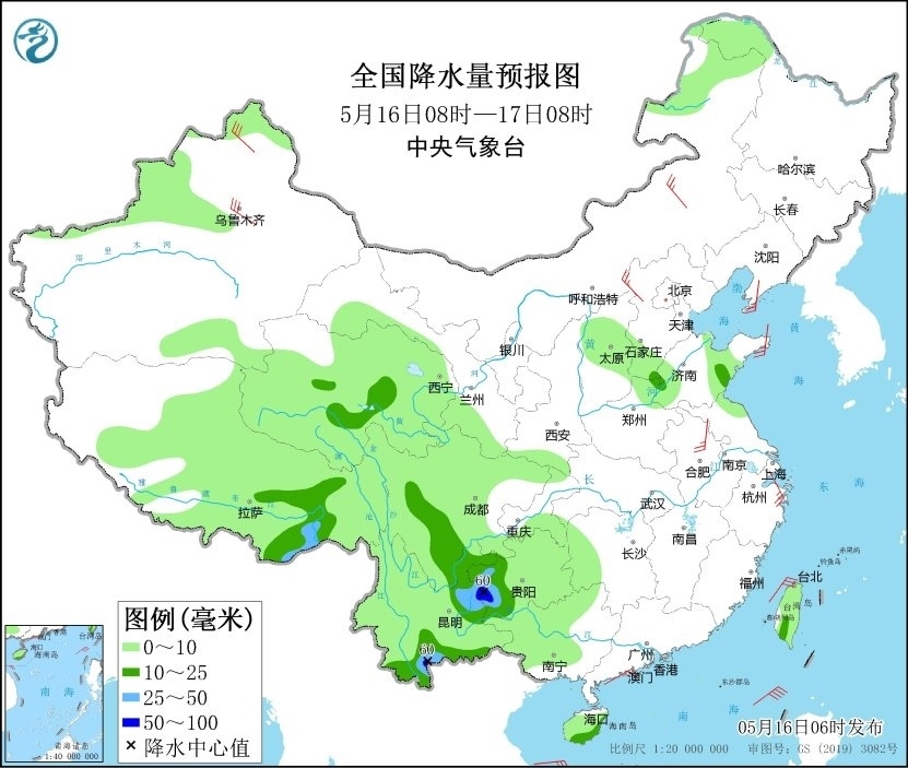 人民網(wǎng)北京5月16日電 (溫璐、高清揚(yáng))據(jù)中央氣象臺(tái)網(wǎng)站消息,昨日以來,貴州、云南、廣西、海南島等地的部分地區(qū)出現(xiàn)大到暴雨,其中廣西百色、崇左,海南五指山、保亭和三亞等地局地大暴雨。預(yù)計(jì)今明兩天,上述地區(qū)仍多降雨天氣,部分地區(qū)降水較強(qiáng),公眾需加強(qiáng)防范。