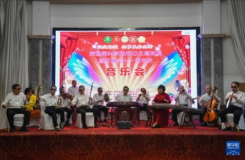 5月13日,“自強不息藝術(shù)團盲人樂隊”成員在周年慶上演出。新華社記者 胥冰潔 攝