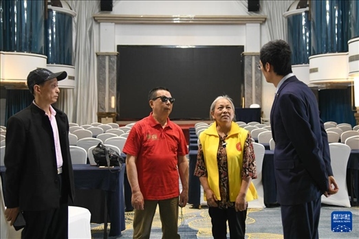 5月6日,張世維(左二)和妻子馮懿蘋(右二)與酒店負責(zé)人溝通周年慶演出細節(jié)。新華社記者 胥冰潔 攝