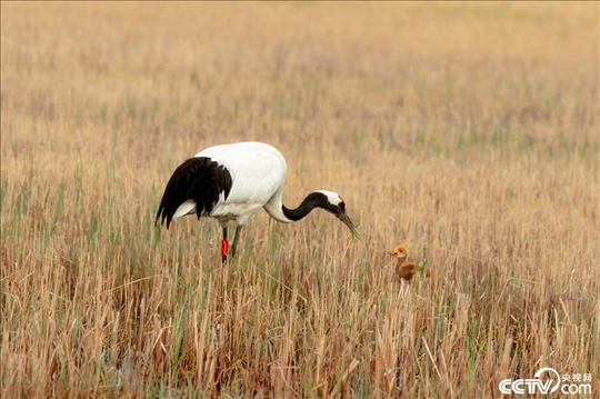 黑龍江省齊齊哈爾市扎龍國(guó)家自然保護(hù)區(qū),國(guó)家一級(jí)保護(hù)動(dòng)物野化的一對(duì)丹頂鶴夫妻成功孵化一個(gè)丹頂鶴寶寶,丹頂鶴夫妻蘆葦蕩里叼著食物喂小寶寶,丹頂鶴寶寶毛茸茸的非常可愛(ài)。