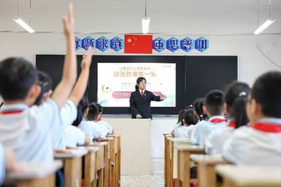 近日,吉林省四平市鐵西區(qū)人民法院依托法治副校長(zhǎng)工作機(jī)制,攜手四平市陽(yáng)光實(shí)驗(yàn)小學(xué)舉辦了一場(chǎng)生動(dòng)的“開學(xué)第一課”,通過與同學(xué)們互動(dòng)問答、角色扮演等形式,為青少年健康成長(zhǎng)營(yíng)造良好法治環(huán)境,不斷提升青少年群體的法治素養(yǎng)。圖為法官與同學(xué)們?cè)谡n堂上進(jìn)行互動(dòng)交流。(記者 孫兵 通訊員 任青陽(yáng))