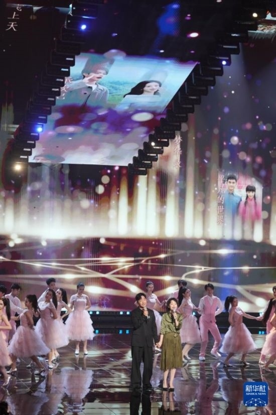 10月18日,演員郭曉東(前左)與演員閆妮(前右)在第15屆中國金鷹電視藝術(shù)節(jié)開幕式文藝晚會現(xiàn)場表演。