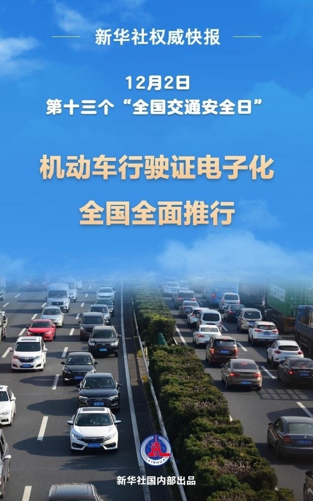 記者1日從公安部獲悉,自今年12月2日起,機動車行駛證電子化在全國全面推行,全國所有車主均可通過“交管12123”APP申領電子行駛證。
