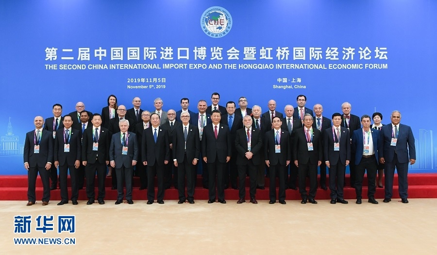 開幕式前,習(xí)近平同外方領(lǐng)導(dǎo)人集體合影,并親切會(huì)見世界500強(qiáng)企業(yè)家代表、出席“70年中國發(fā)展與人類命運(yùn)共同體”論壇外方智庫媒體代表、出席世貿(mào)組織小型部長會(huì)議外方部長和代表團(tuán)團(tuán)長。