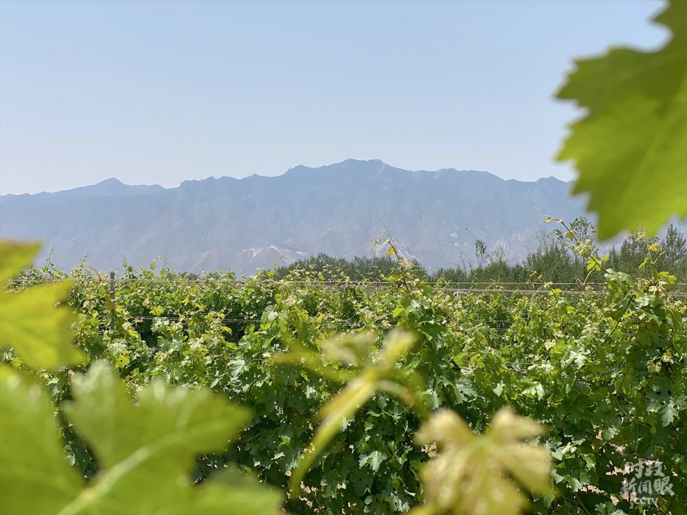 △身處葡萄種植園能清晰望見賀蘭山。(總臺(tái)央視記者彭漢明拍攝)