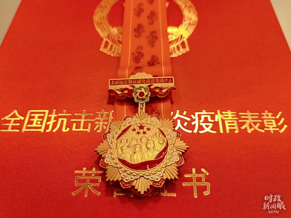 △全國抗擊新冠肺炎疫情先進個人獎章和證書。(總臺央視記者張淳拍攝)