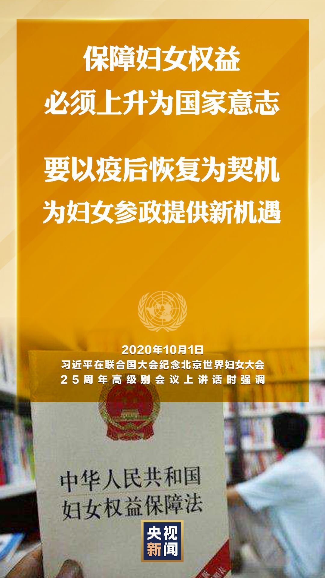 國家主席習(xí)近平10月1日在聯(lián)合國大會紀(jì)念北京世界婦女大會25周年高級別會議上通過視頻發(fā)表重要講話。就如何切實保護婦女權(quán)益,習(xí)近平提出中國主張。