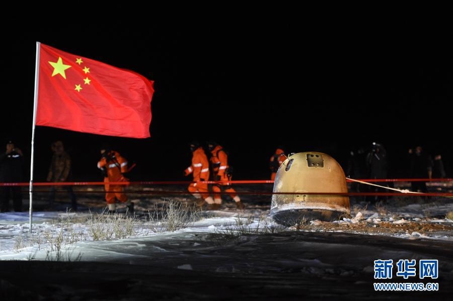 2020年12月17日凌晨,嫦娥五號返回器攜帶月球樣品,采用半彈道跳躍方式再入返回,在內(nèi)蒙古四子王旗預(yù)定區(qū)域安全著陸。新華社記者 連振 攝