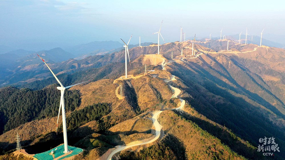 △廣西柳州,三江侗族自治縣大力發(fā)展清潔能源產(chǎn)業(yè),一字排開的風(fēng)力發(fā)電機成為侗鄉(xiāng)新地標(biāo)。