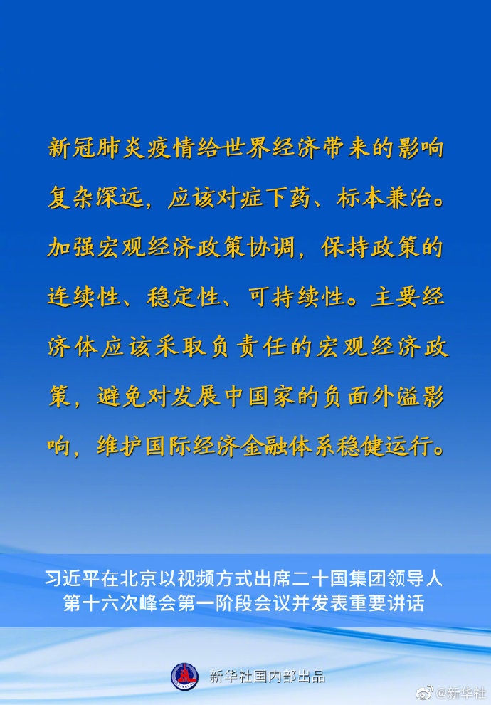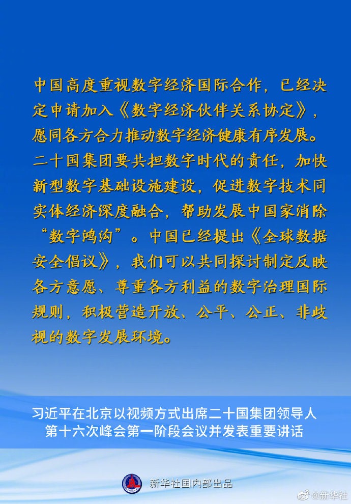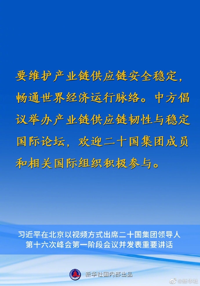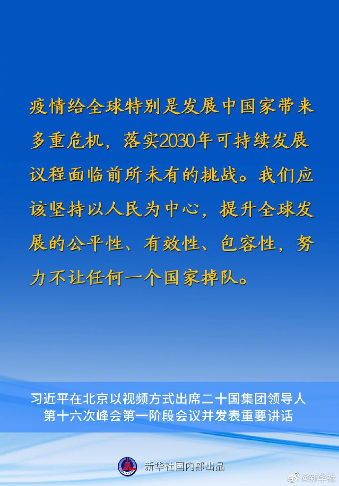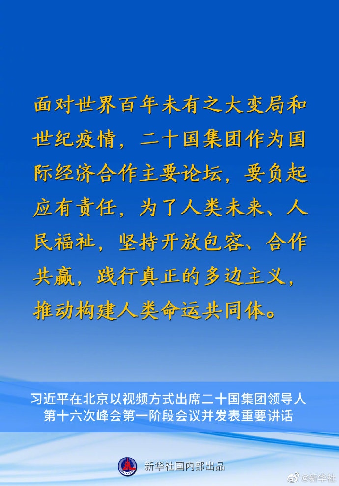 習(xí)近平主席在二十國(guó)集團(tuán)領(lǐng)導(dǎo)人第十六次峰會(huì)第一階段會(huì)議上的重要講話要點(diǎn)速覽