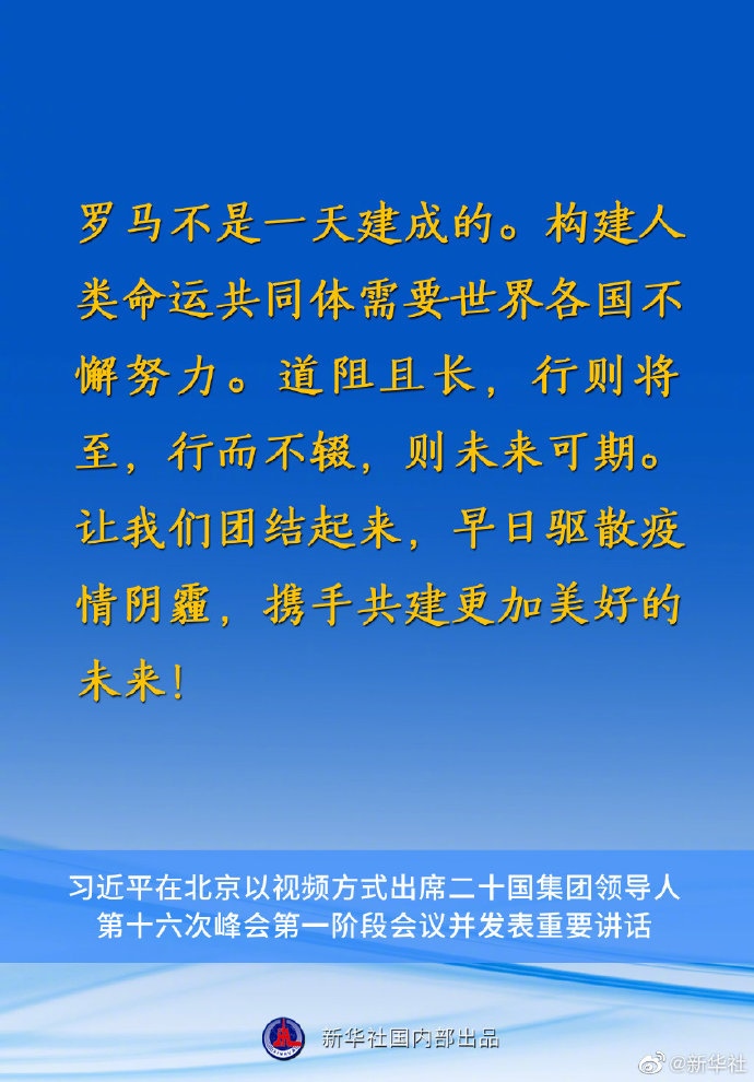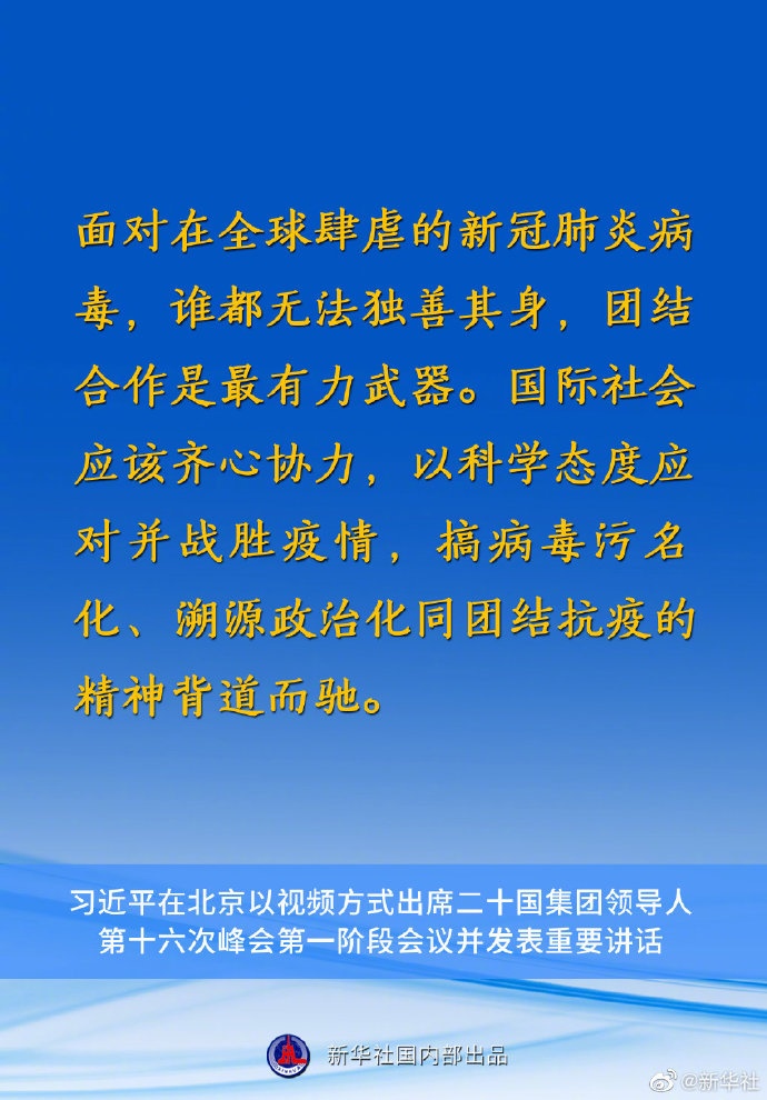 國(guó)家主席習(xí)近平10月30日在北京以視頻方式出席二十國(guó)集團(tuán)領(lǐng)導(dǎo)人第十六次峰會(huì)第一階段會(huì)議并發(fā)表重要講話。講話有哪些要點(diǎn),一起來(lái)看↓