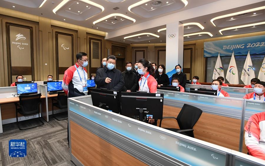 1月4日,中共中央總書(shū)記、國(guó)家主席、中央軍委主席習(xí)近平在北京考察2022年冬奧會(huì)、冬殘奧會(huì)籌辦備賽工作。這是4日下午,習(xí)近平在北京冬奧運(yùn)行指揮部調(diào)度中心考察。新華社記者 謝環(huán)馳 攝